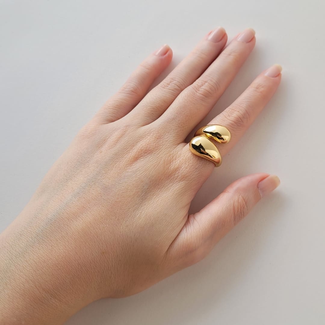 Anel duas gotas abaulado banho ouro 18k