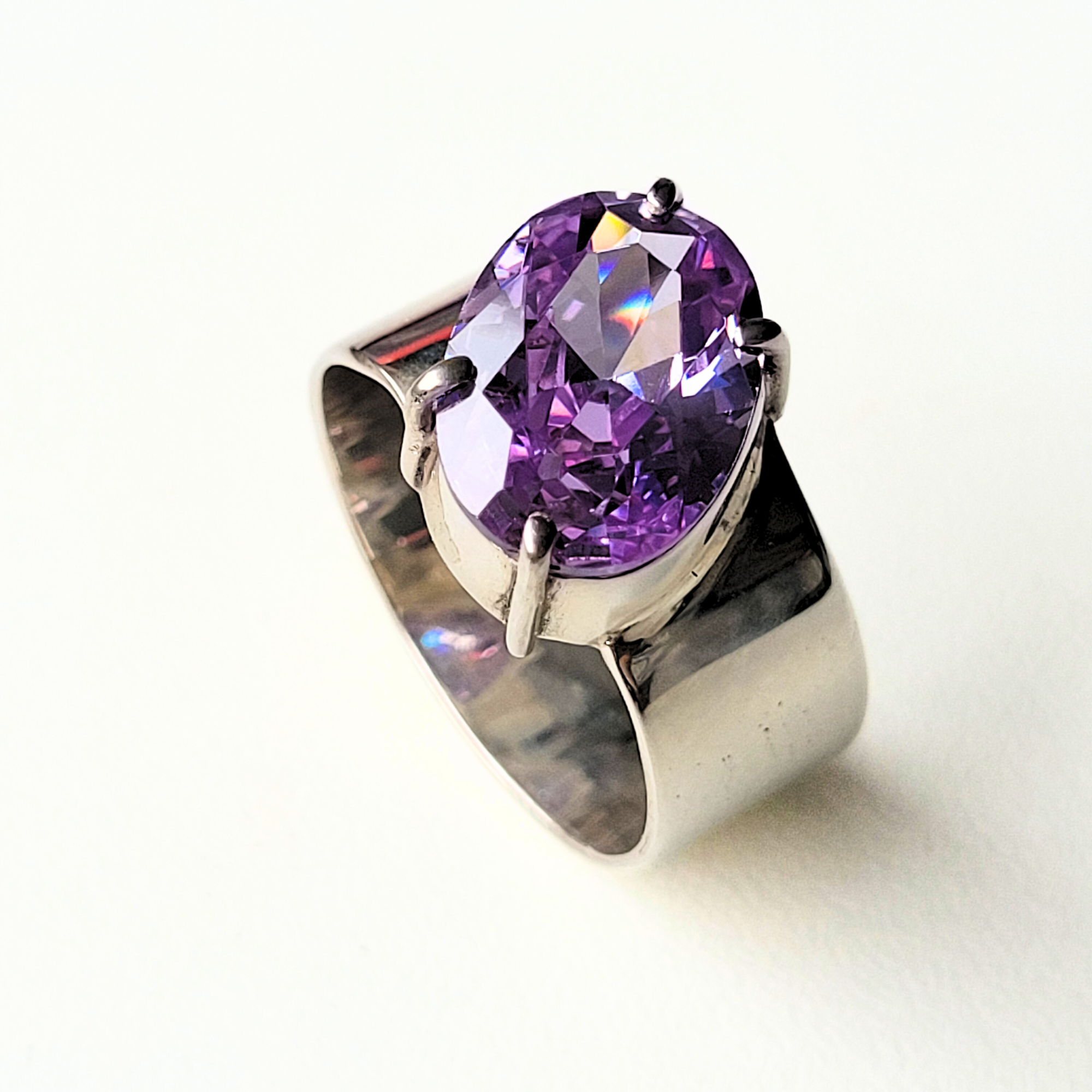 Anel largo zirconia ametista prata 950