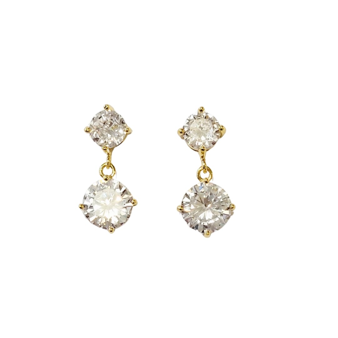 Brinco 2 pontos de luz cravação garra zircônias cristal banho ouro 18k