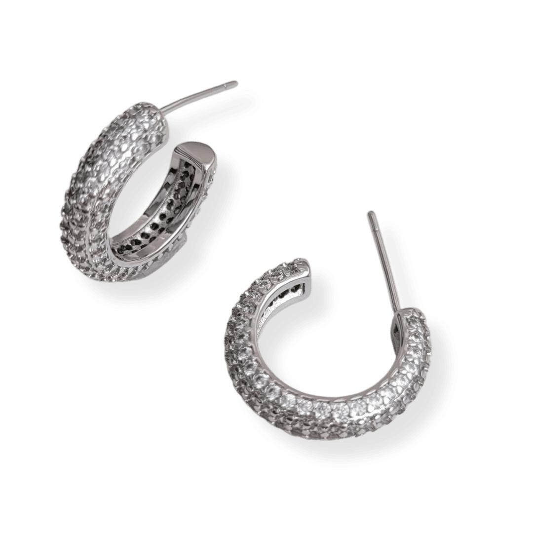 Brinco argolinha cravejada com micro zircônias, banho ródio