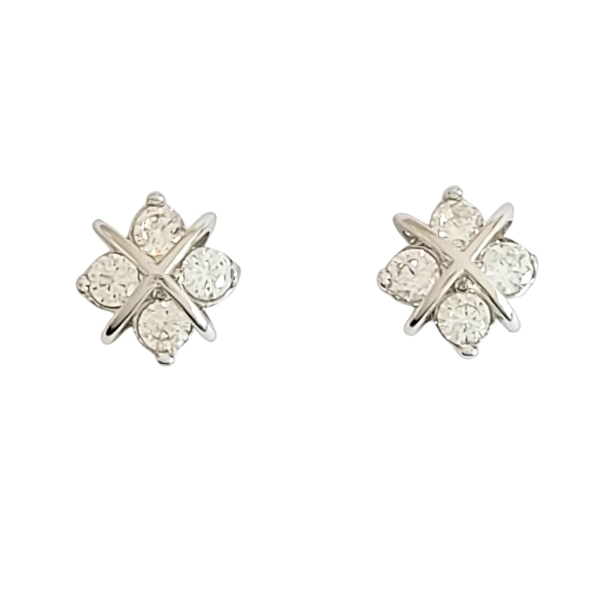 Brinco em Prata 925 formato de xis cravejado com quatro zirconias cristal