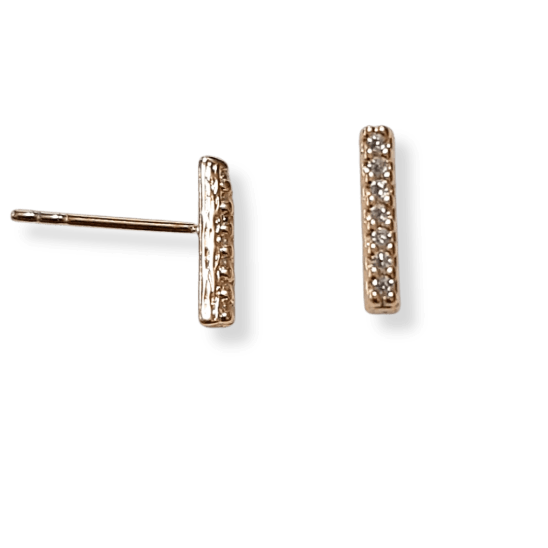 Brinco tracinho cravejado com micro zirconias cristal, banho ouro 18k