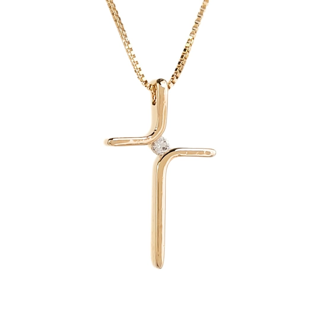 Colar cruz com zirconia cristal no centro banho ouro 18k
