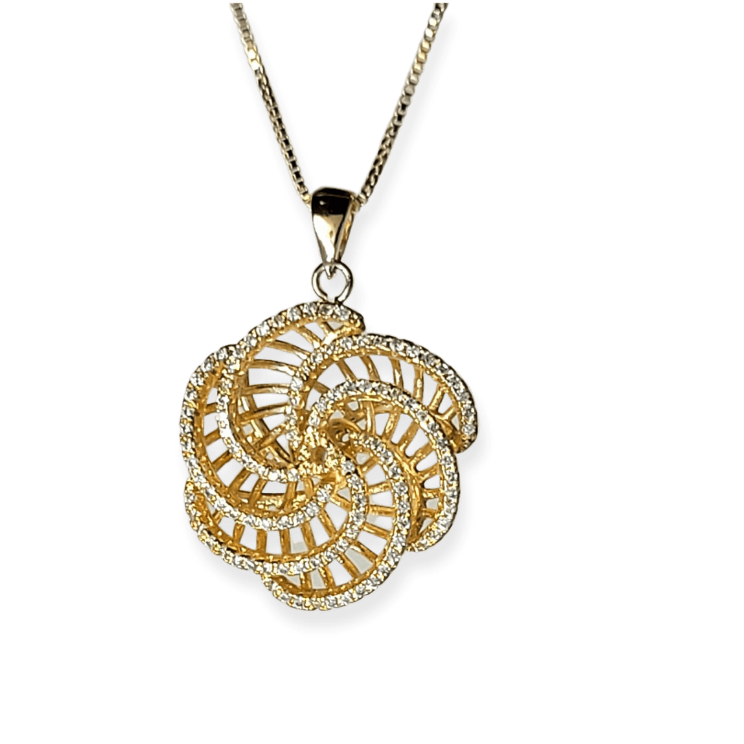 Colar pingente flor espiral cravejada micro zircônias banho ouro 18k