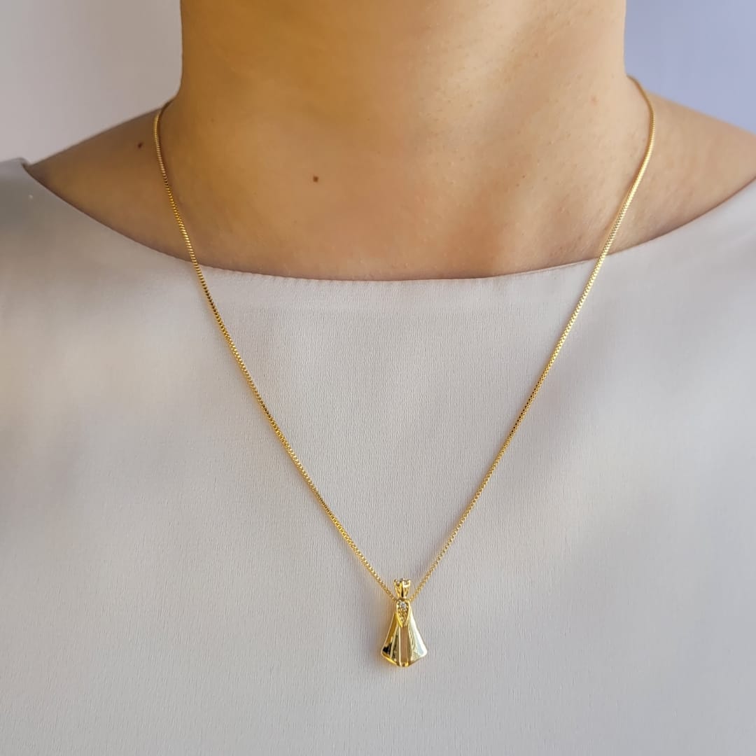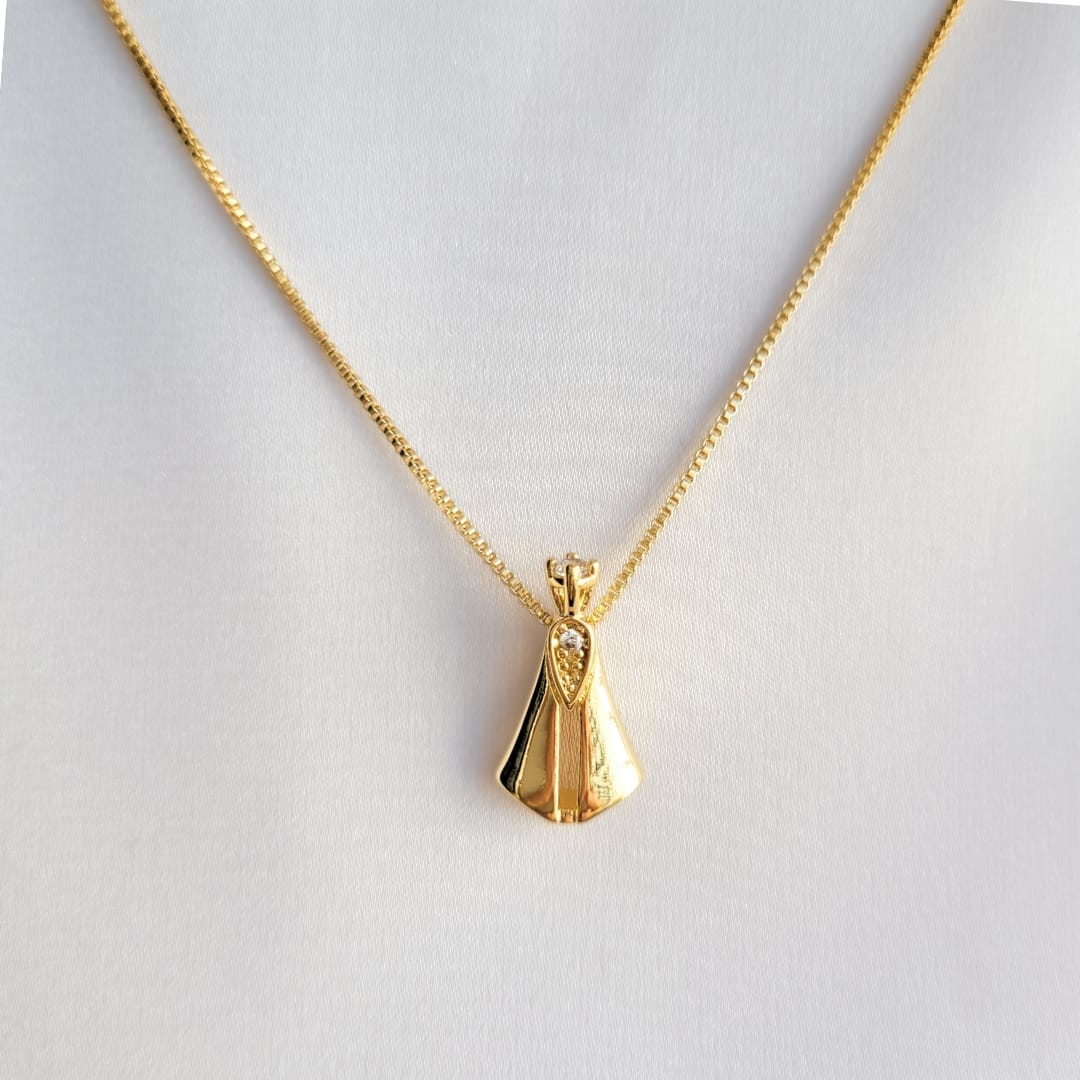 Colar pingente N.Sra.Aparecida manto metal rosto e coroa zirconias cristal banho ouro 18k