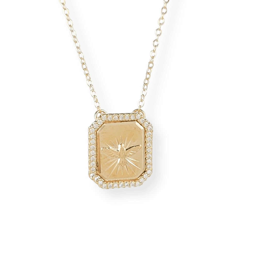 Colar pingente quadrado espirito santo borda cravejada micro zircônias cristal banho ouro 18k