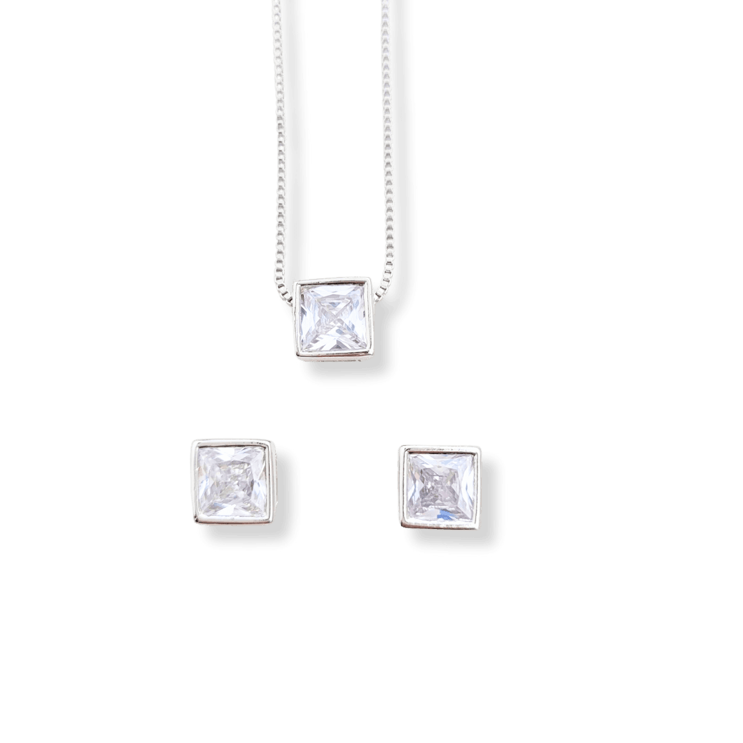 Conjunto colar e brincos ponto de luz quadrado zircônia banho ródio